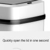 - Ouverture et Fermeture Automatiques 🤖 : Le couvercle s’ouvre automatiquement dès qu’un mouvement est détecté et se referme automatiquement après quelques secondes d’inactivité, limitant ainsi les risques de contamination croisée.