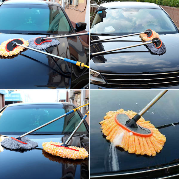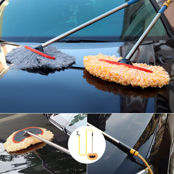 * 1. Combinez une brosse de nettoyage de lavage de voiture avec un distributeur d’eau qui n’a besoin que de vous pour connecter la brosse avec un robinet d’eau via un tuyau (en option) pour augmenter l’efficacité du nettoyage.